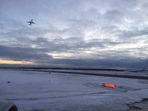 新千歳空港に到着するころにはすっかり陽も落ちて、薄暗い雪景色